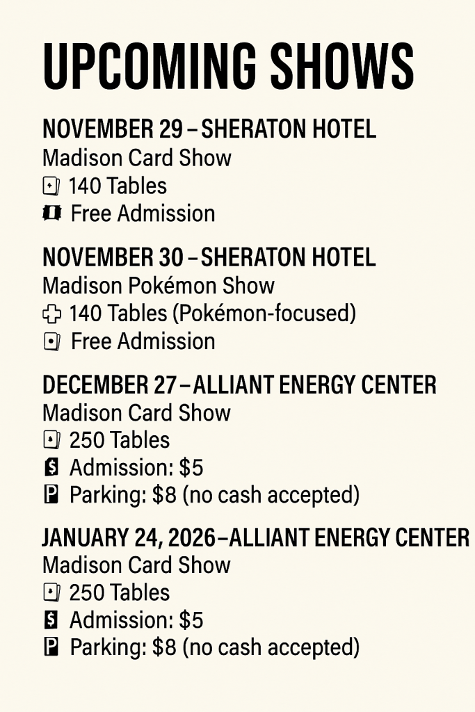 - January 24, 2026 – Alliant Energy Center – Madison Card Show