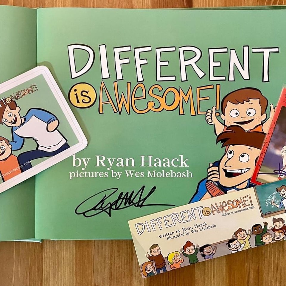 This fun, colorful and important book is based on a true story of when Ryan, who was born with one hand, was taken to school by his little brother for show-and-tell! As his little brother’s classmates ask him questions about how he does things like play baseball, the reader realizes that we’re all different in some way or another and it’s those differences that make us awesome. Endorsed by Haack’s childhood-hero-turned-friend, Jim Abbott, “Different Is Awesome!” is perfect for every family, classroom, library and waiting room! Make sure to stop by and grab a signed copy (which will include a VERY special gift, while supplies last)!